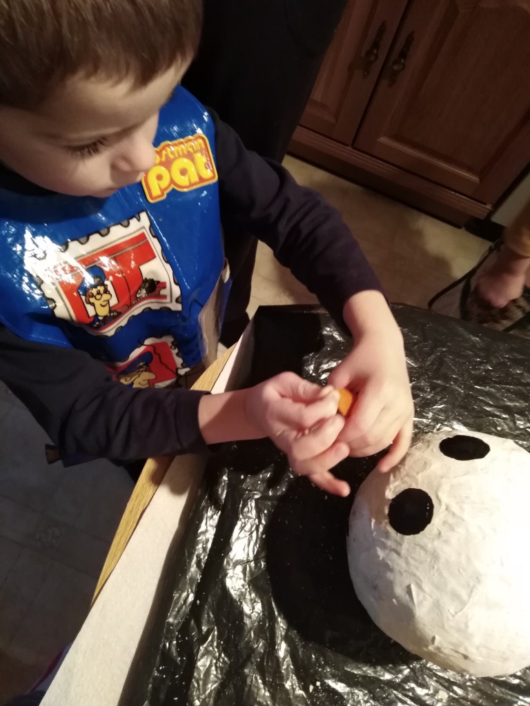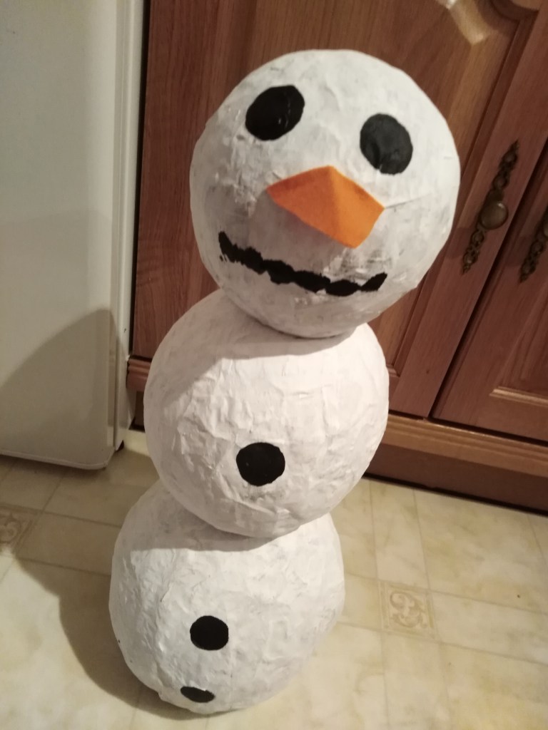 This winter, before we had any snow, we made paper-mache snowmen. I hope you enjoy the photos below.
